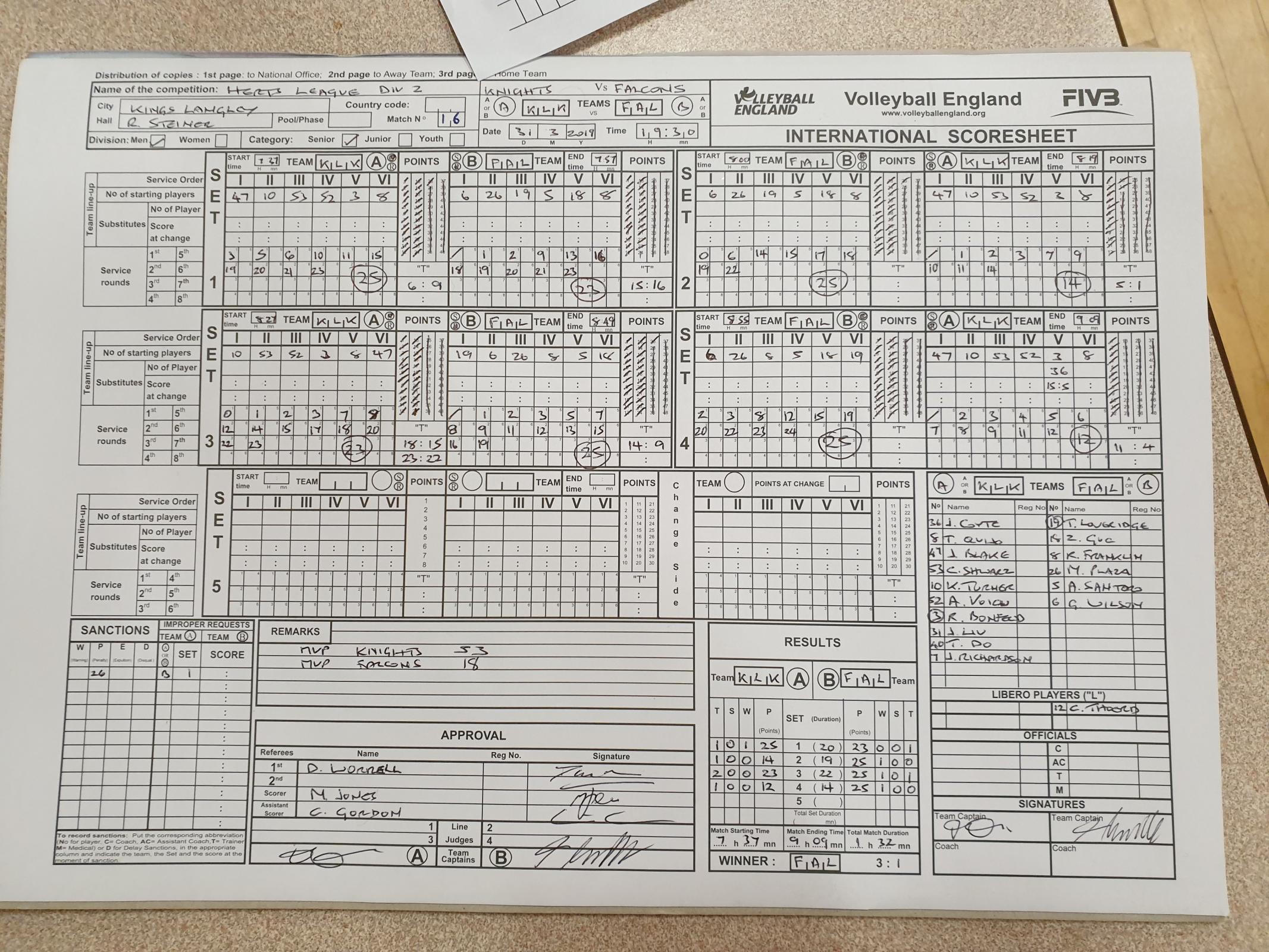 Penalty on scoresheet for Falcons 26, was a yellow card Warning after set 1 and should have recorded in set 2.