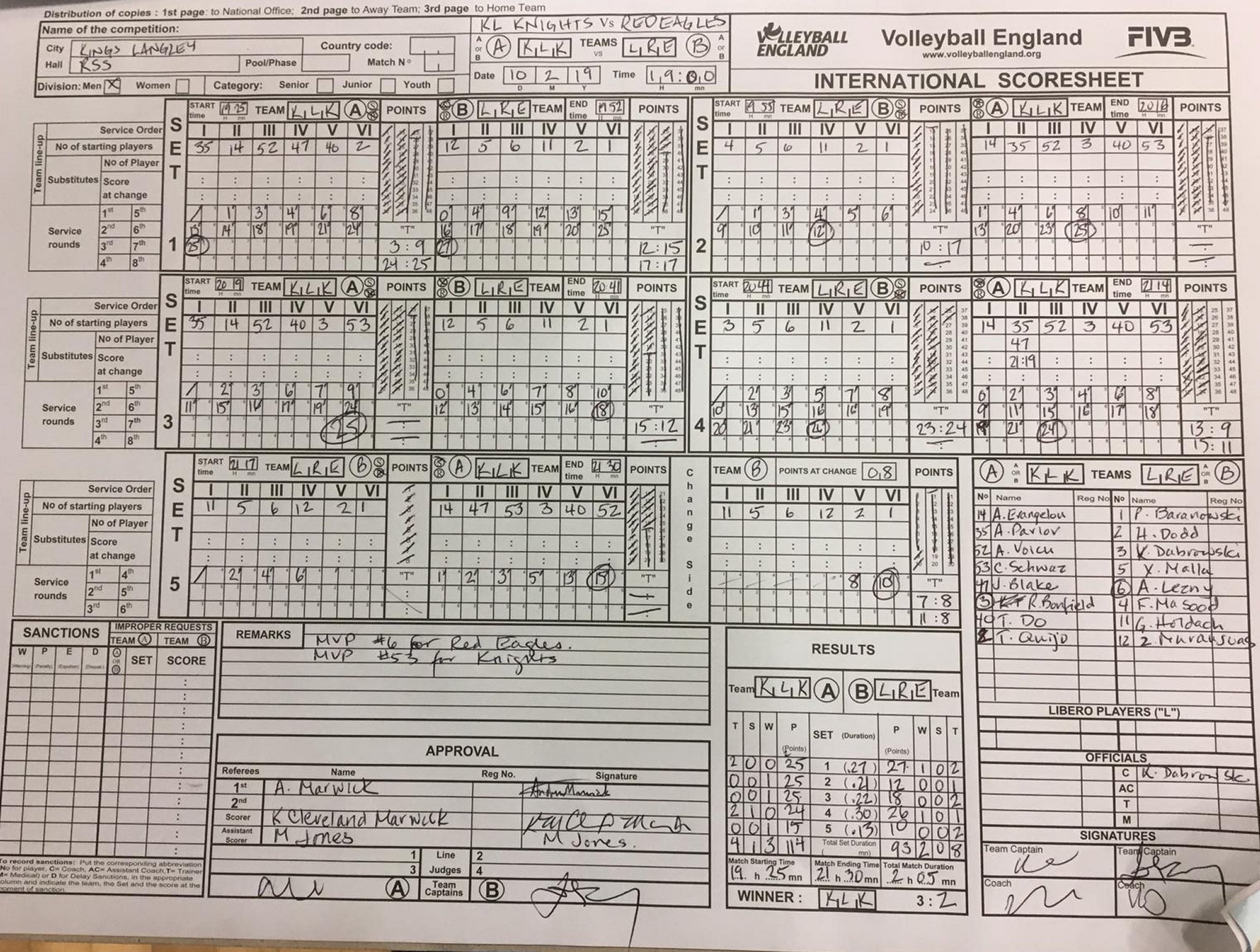 * League Points are normally awarded as follows: 1 point for playing, 1 point per set won and 2 points for a win. In the unlikely event of a draw due to time-restrictions, each team gets 1 point for the draw.