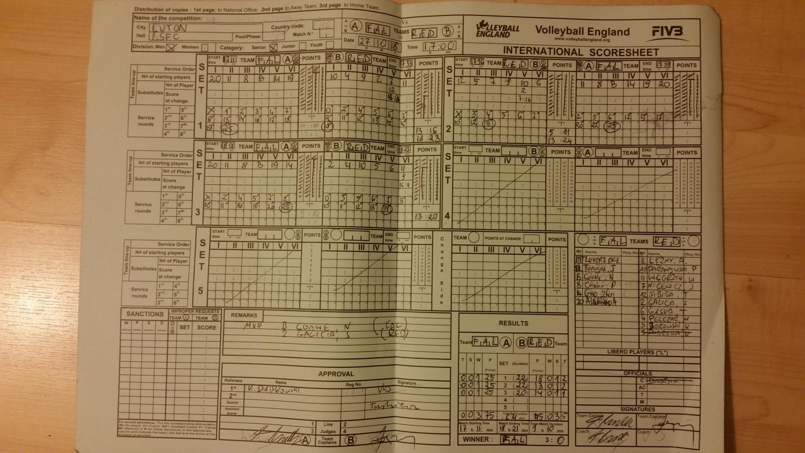No scorer name provided on scoresheet.
