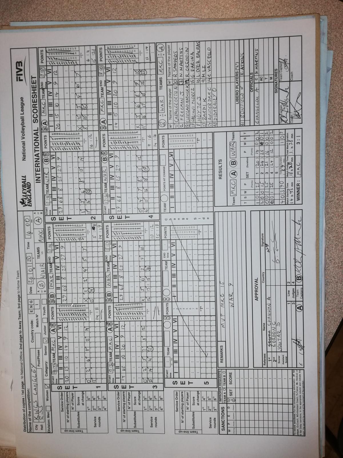 Error in RESULT for 4th set on scoresheet. Should be 19 to WAR, not 12.