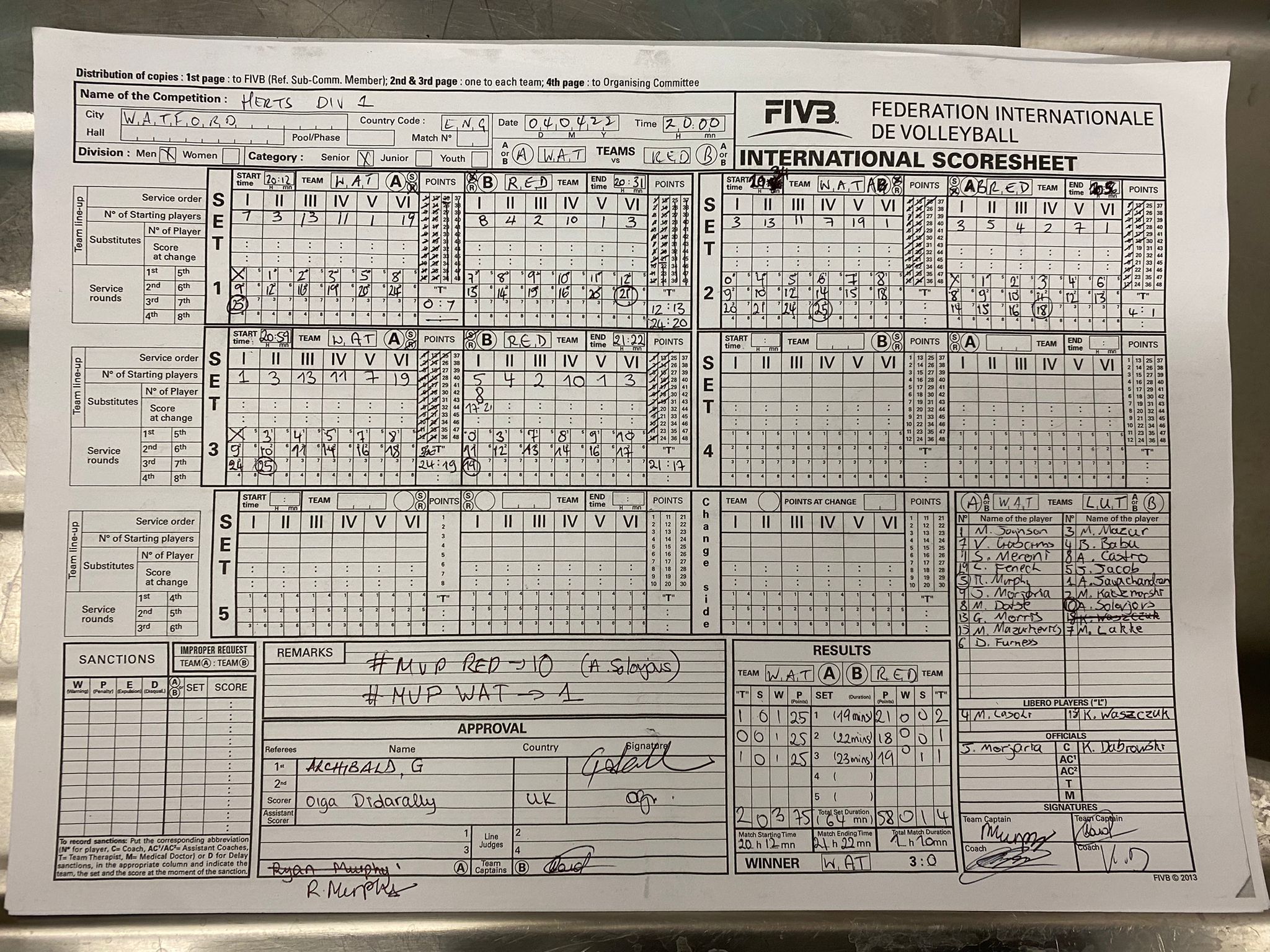 Dotse, M Fenech, L Furness, D Guscims, V Joynson, M Lasoki, M Mazurkevics, M Meroni, S Morjaria, J Morris, G Murphy, R |
