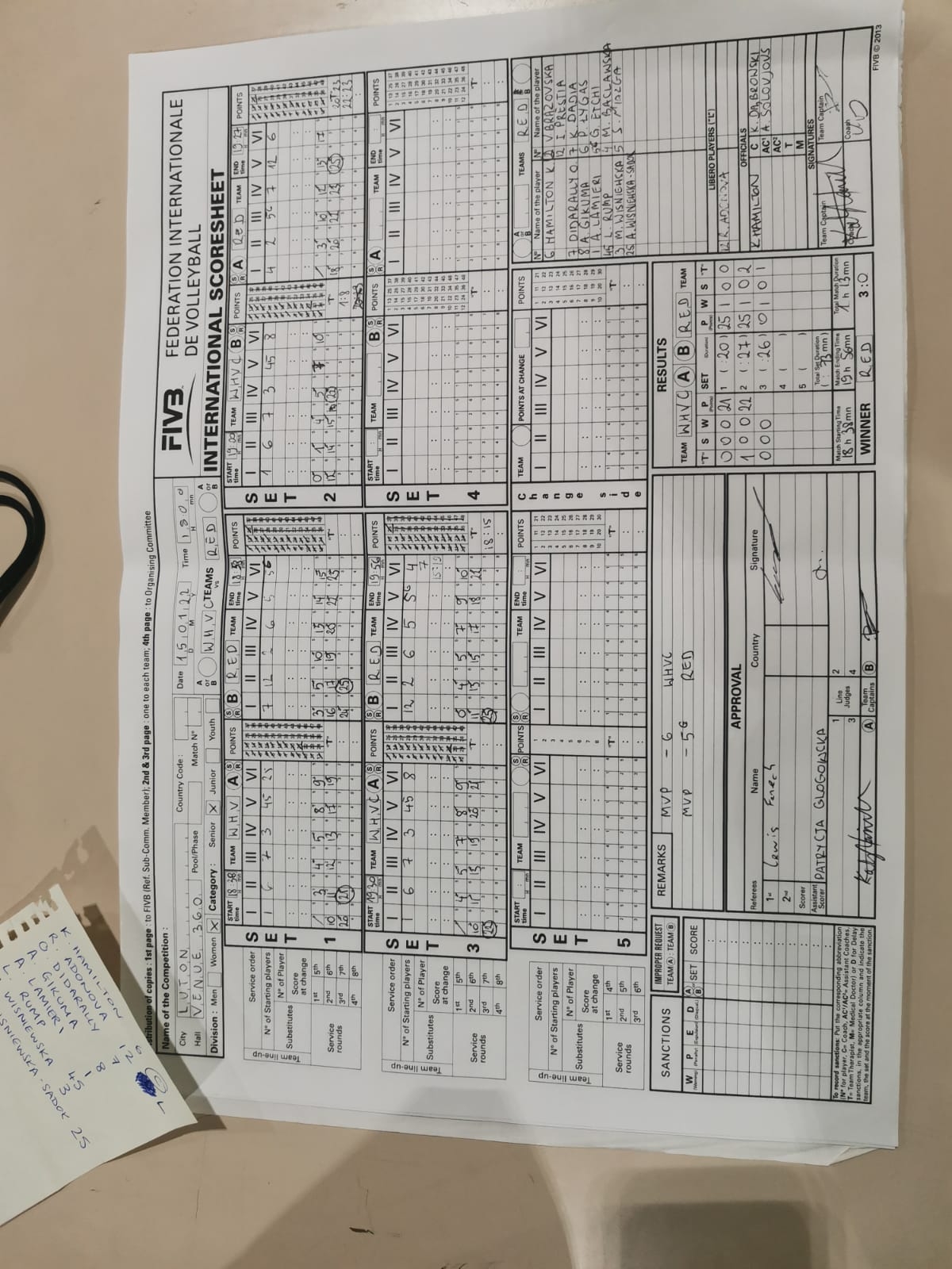 Scoresheet filled out incorrectly for Set 2. No final set score on RESULTS section.