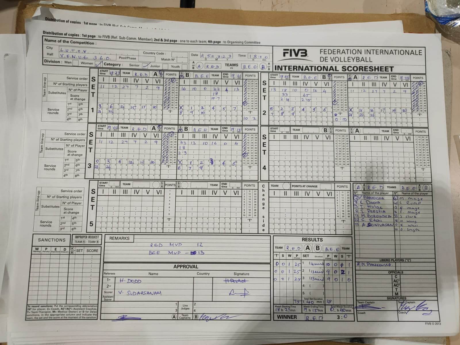 Clark, J (33) Mage, F (16) Mage, M (4) Mage, N (13) Rump, L (45) Smyth, O Wall, K (19) Wong, H (18) |