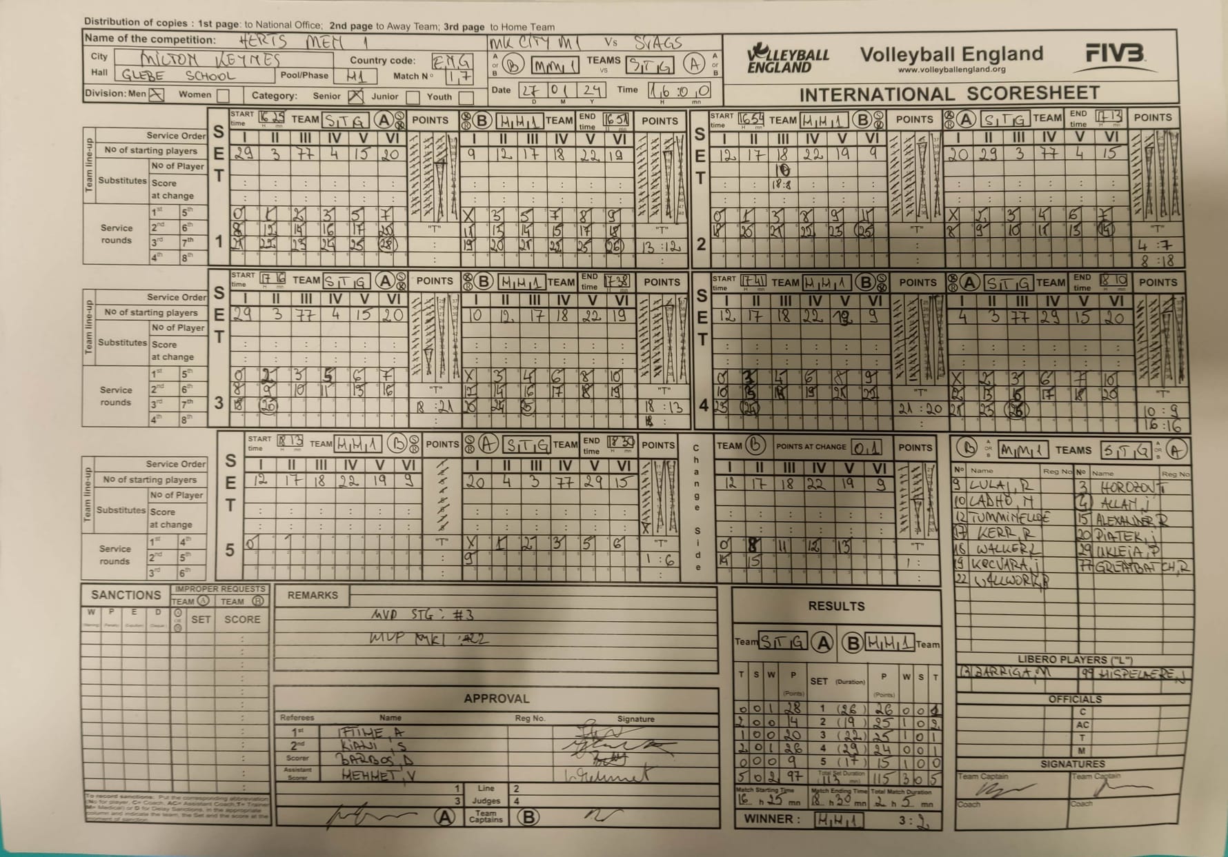 As per scoresheet