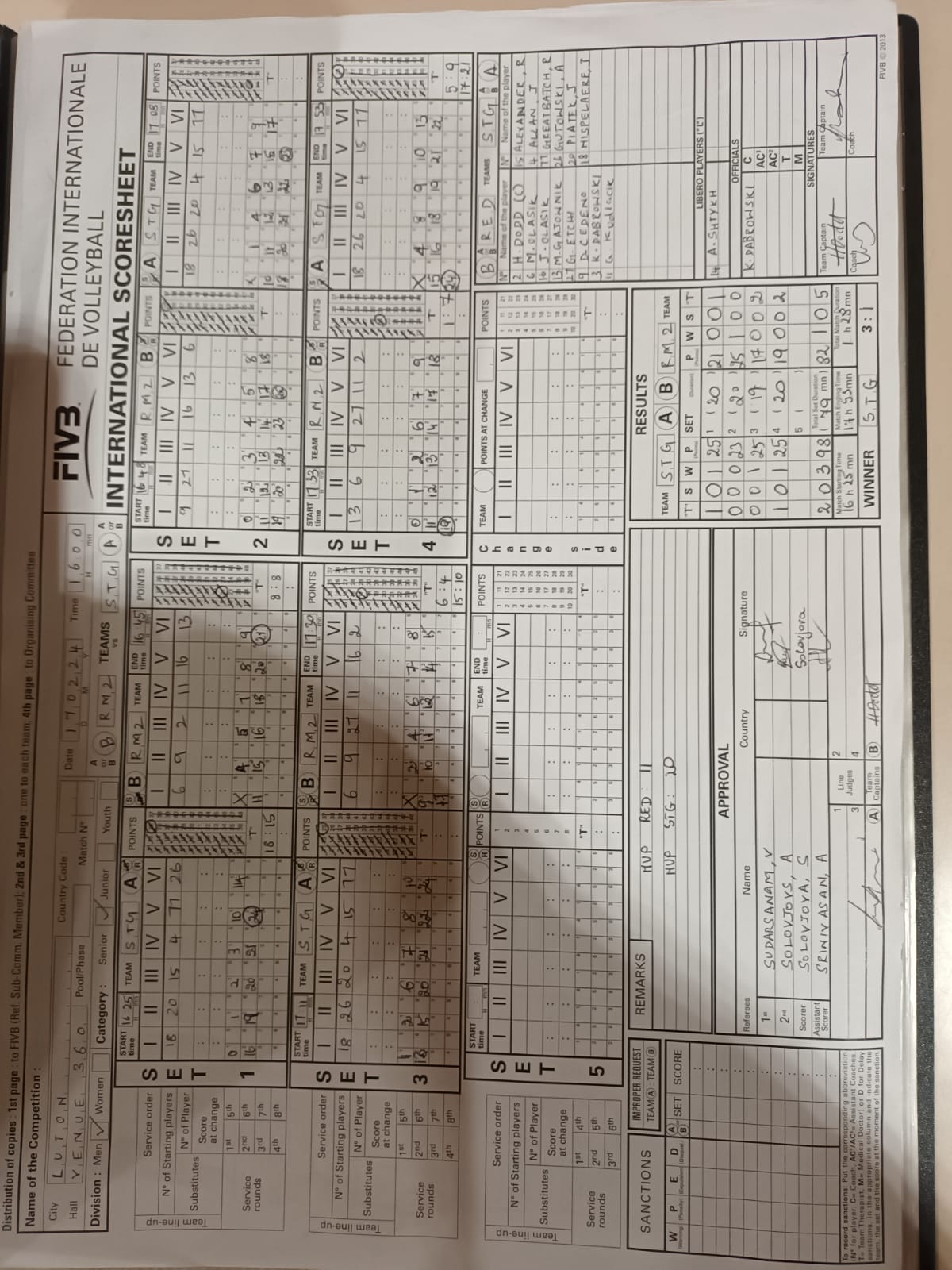 Cedeno, D Dabrowski, K Dodd, H Etchi, G Gajownik, M Kudlacik, A Olasik, J (16) Olasik, M Shtykh, A |