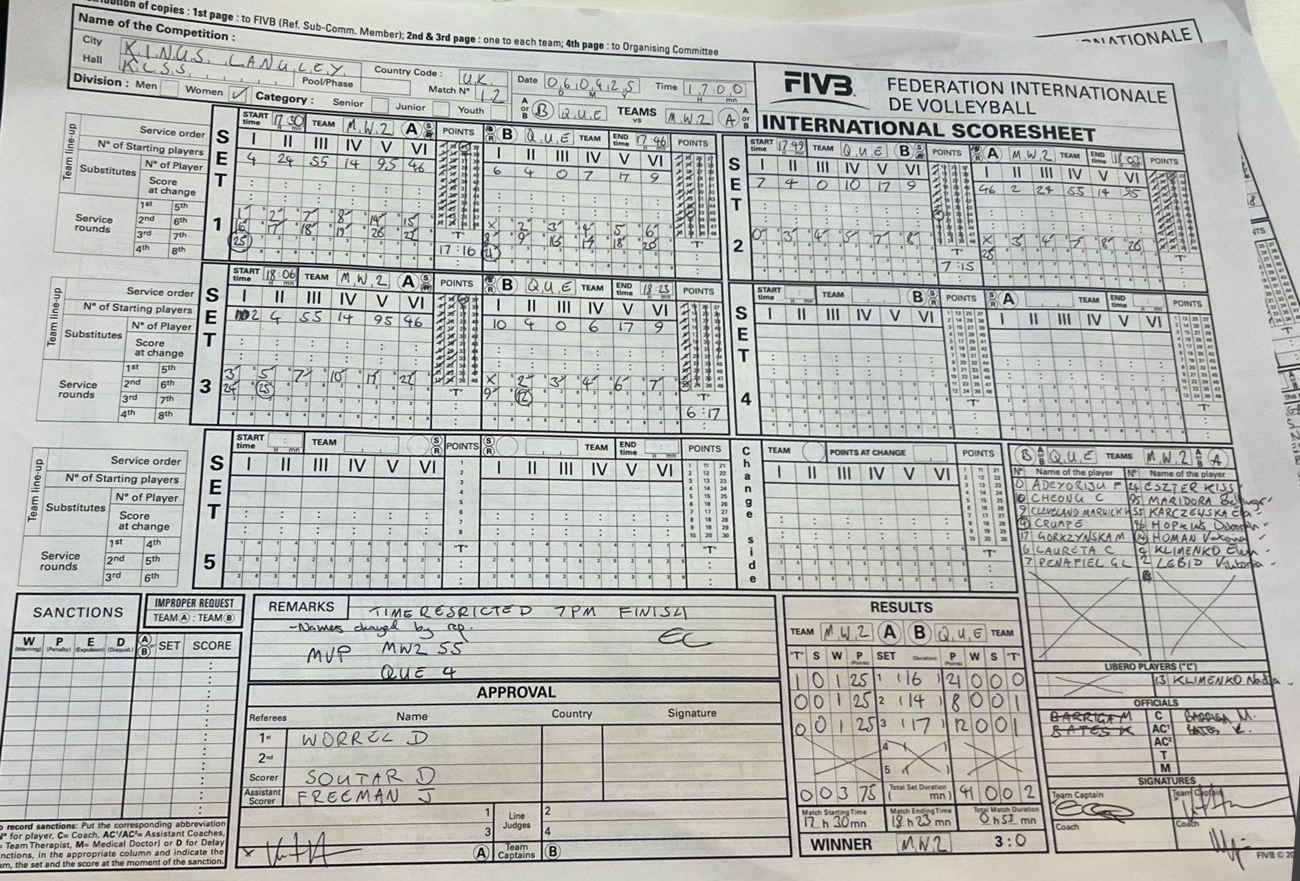 We have seen a fully signed scoresheet, but it had some of the roster missing, so this is the visitor's version. All good.