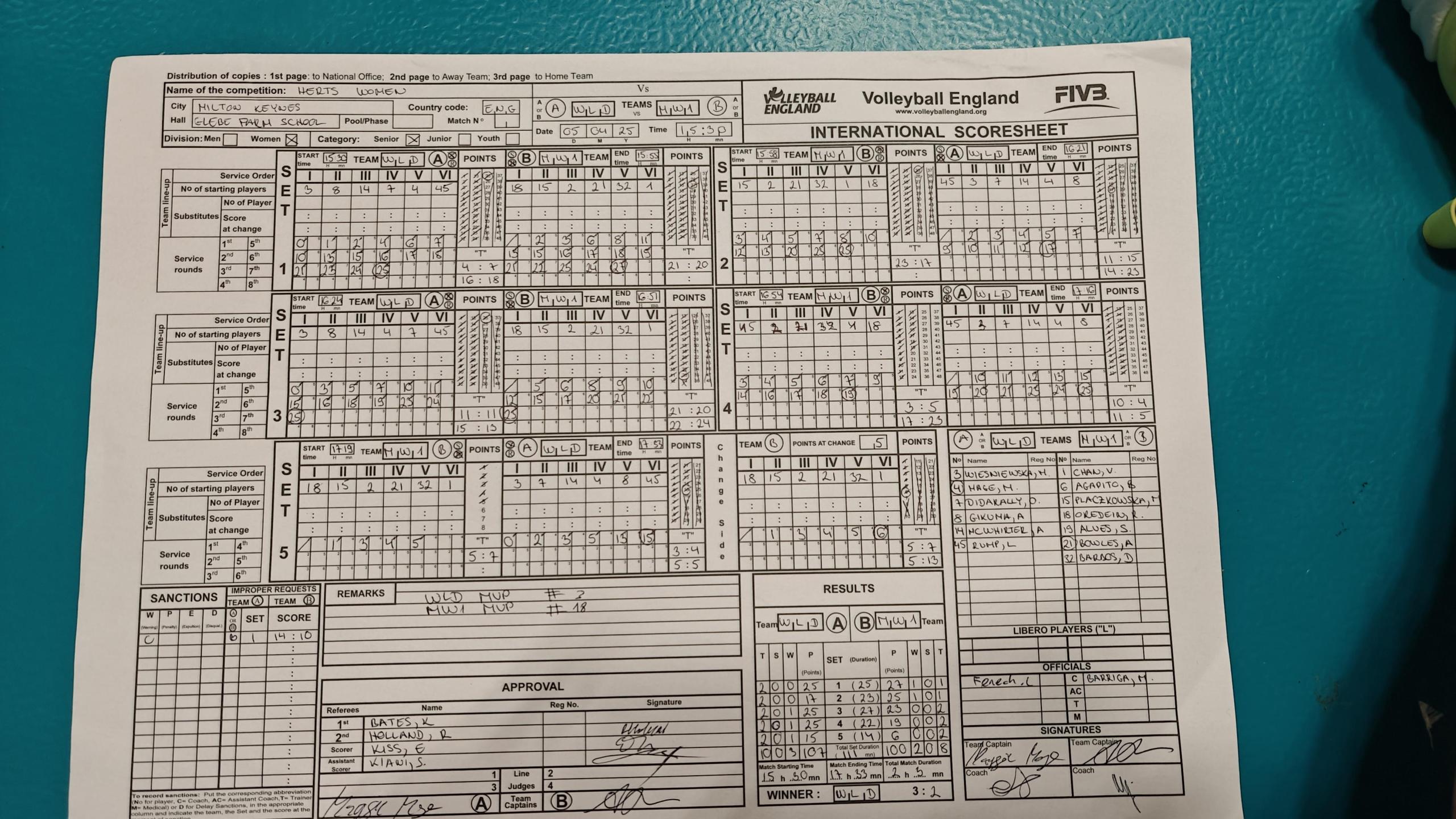 | 4754 | 21/04/2025 | Providing scoresheet late (more than 14 days after the match has been played and then every 7 days) (£5 fine) | £-5 |