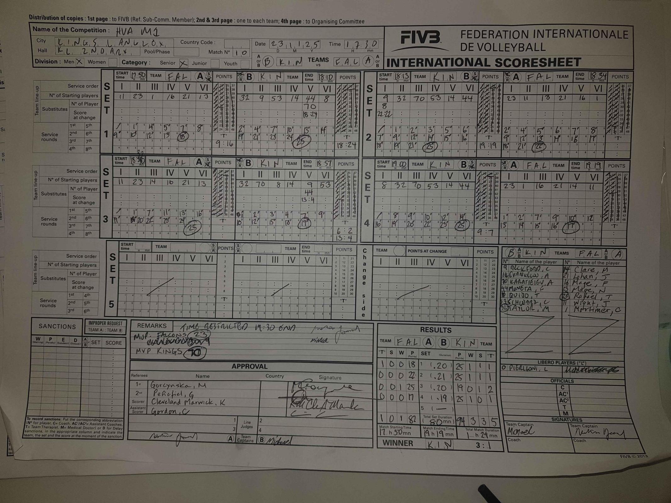 Clare, M (14) Lohan, J (21) Mage, F (16) Mage, N (13) Mortimer, C (28) Rafael, T (23) Wight, J (11) |