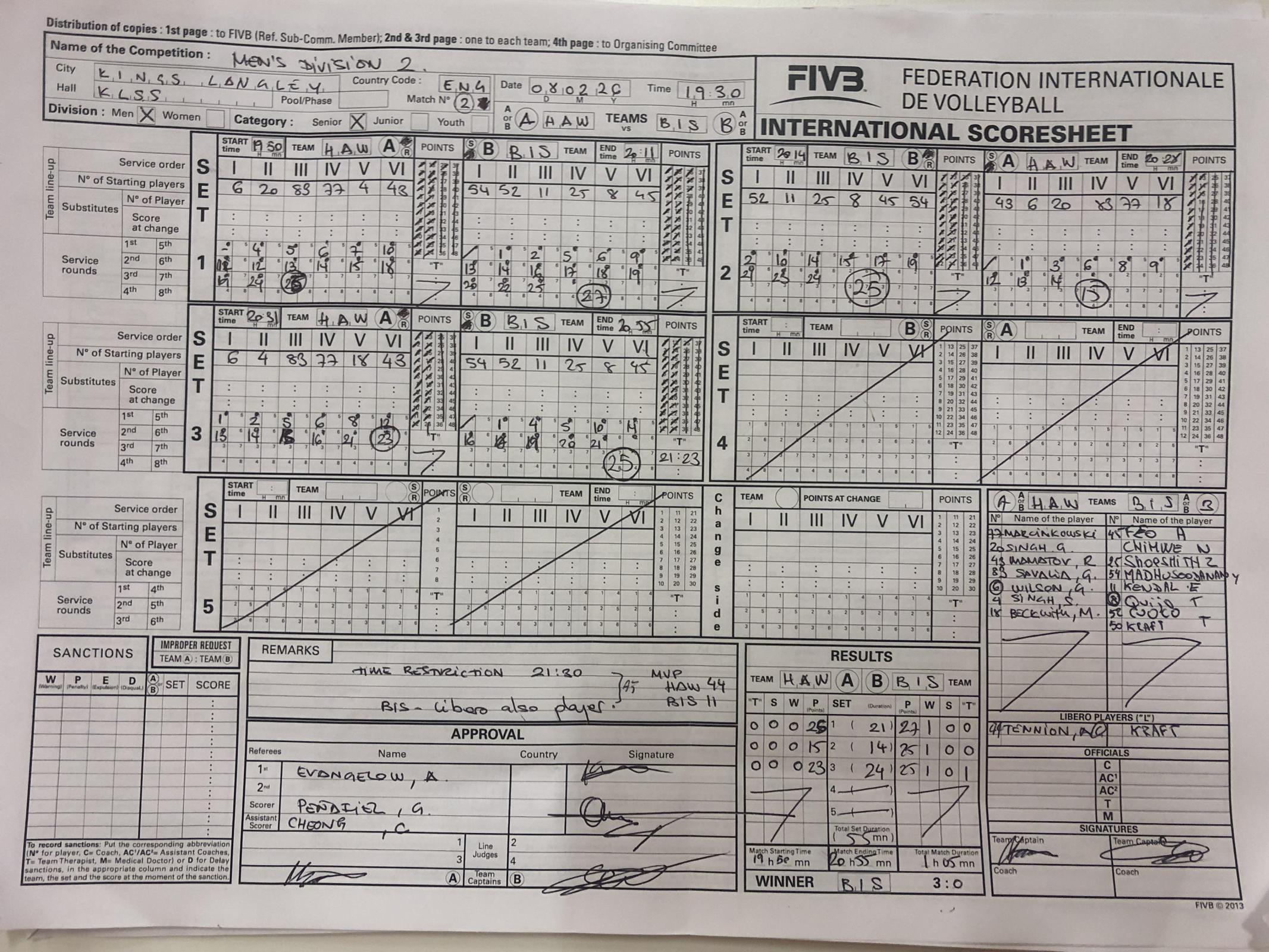 * League Points are normally awarded as follows: 1 point for playing, 1 point per set won and 2 points for a win. In the unlikely event of a draw due to time-restrictions, each team gets 1 point for the draw.