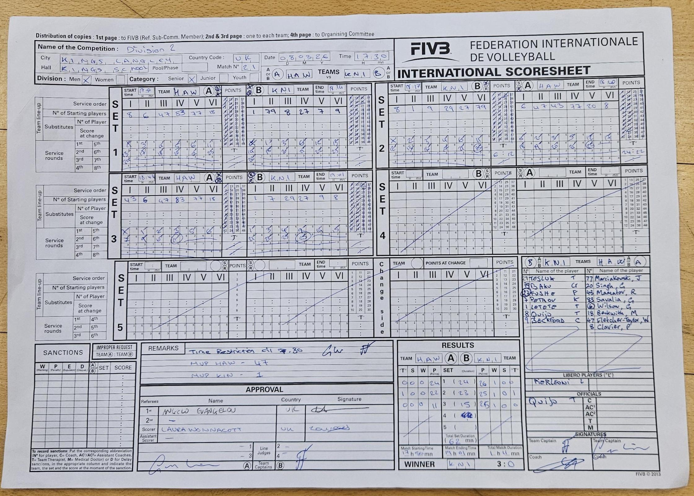 * League Points are normally awarded as follows: 1 point for playing, 1 point per set won and 2 points for a win. In the unlikely event of a draw due to time-restrictions, each team gets 1 point for the draw.
