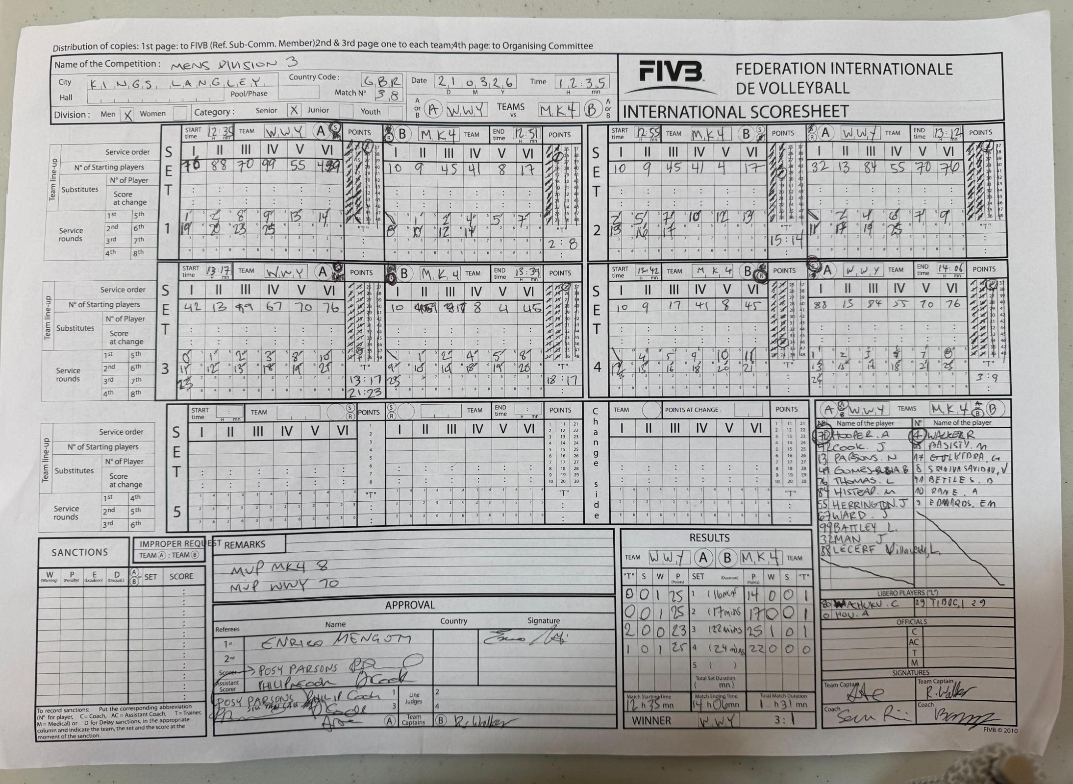 * League Points are normally awarded as follows: 1 point for playing, 1 point per set won and 2 points for a win. In the unlikely event of a draw due to time-restrictions, each team gets 1 point for the draw.