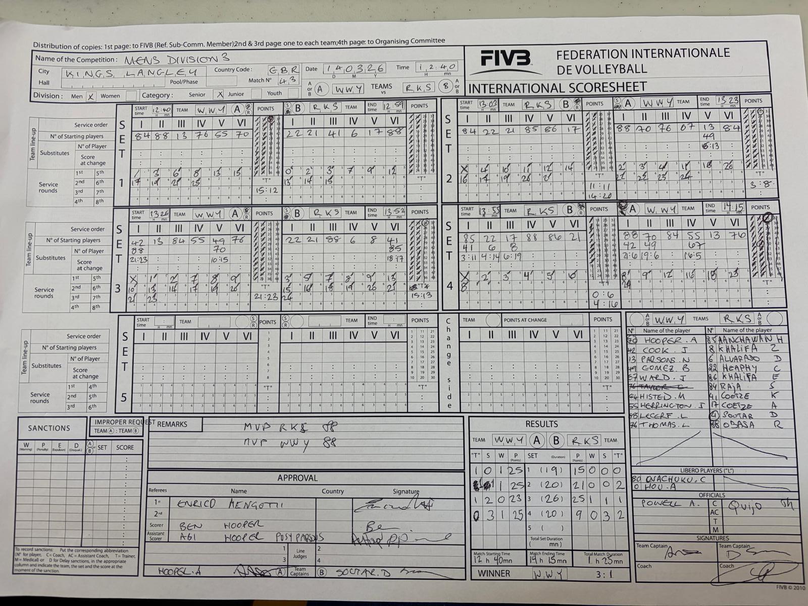 * League Points are normally awarded as follows: 1 point for playing, 1 point per set won and 2 points for a win. In the unlikely event of a draw due to time-restrictions, each team gets 1 point for the draw.