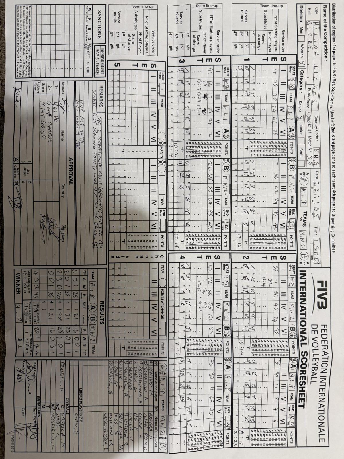 * League Points are normally awarded as follows: 1 point for playing, 1 point per set won and 2 points for a win. In the unlikely event of a draw due to time-restrictions, each team gets 1 point for the draw.