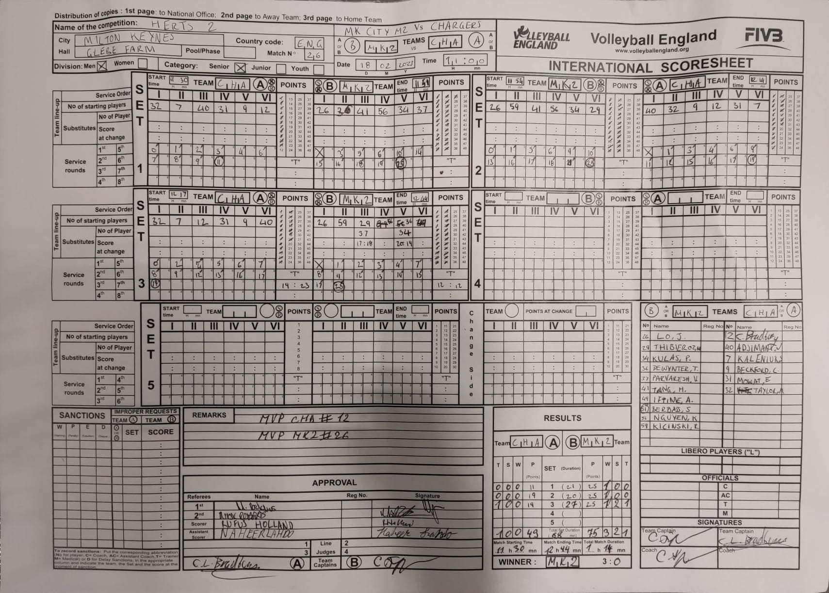 Adjimani, V (40) Beckford, C (9) Bradbury, C (12) Kaleniuk, S (7) Mowat, E (31) Taylor, M (28) |