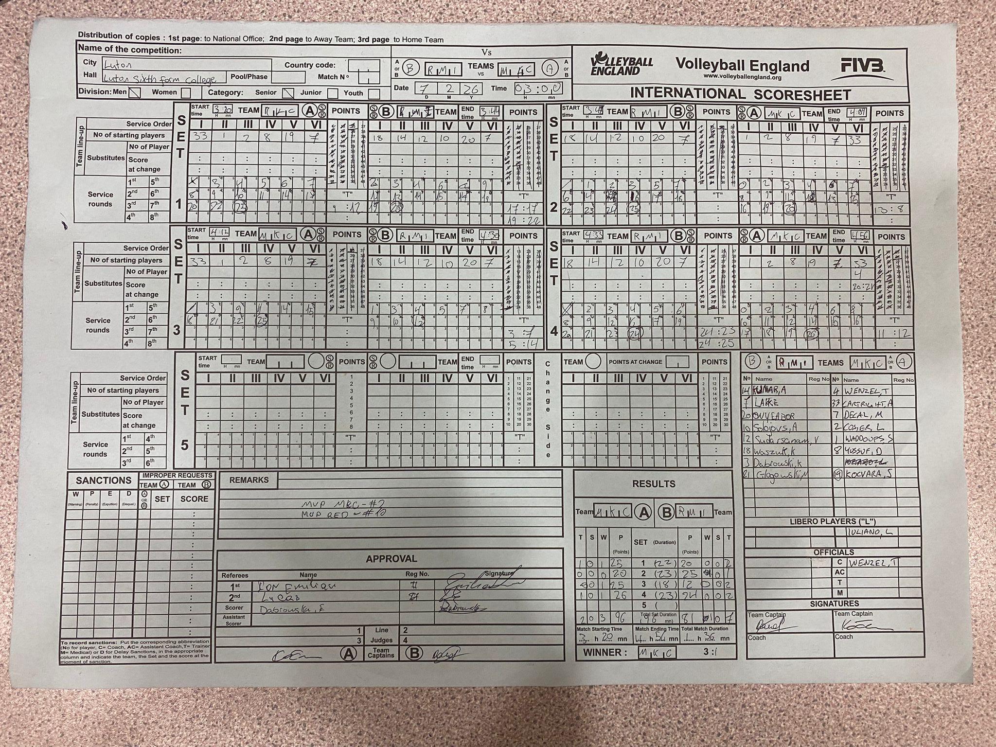 Match Result :