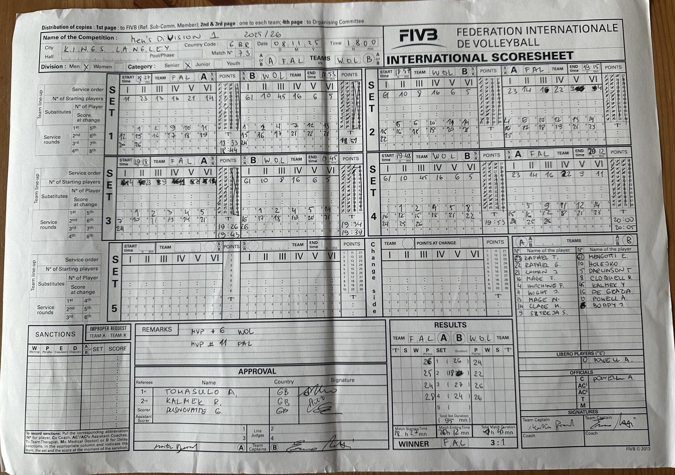 * League Points are normally awarded as follows: 1 point for playing, 1 point per set won and 2 points for a win. In the unlikely event of a draw due to time-restrictions, each team gets 1 point for the draw.