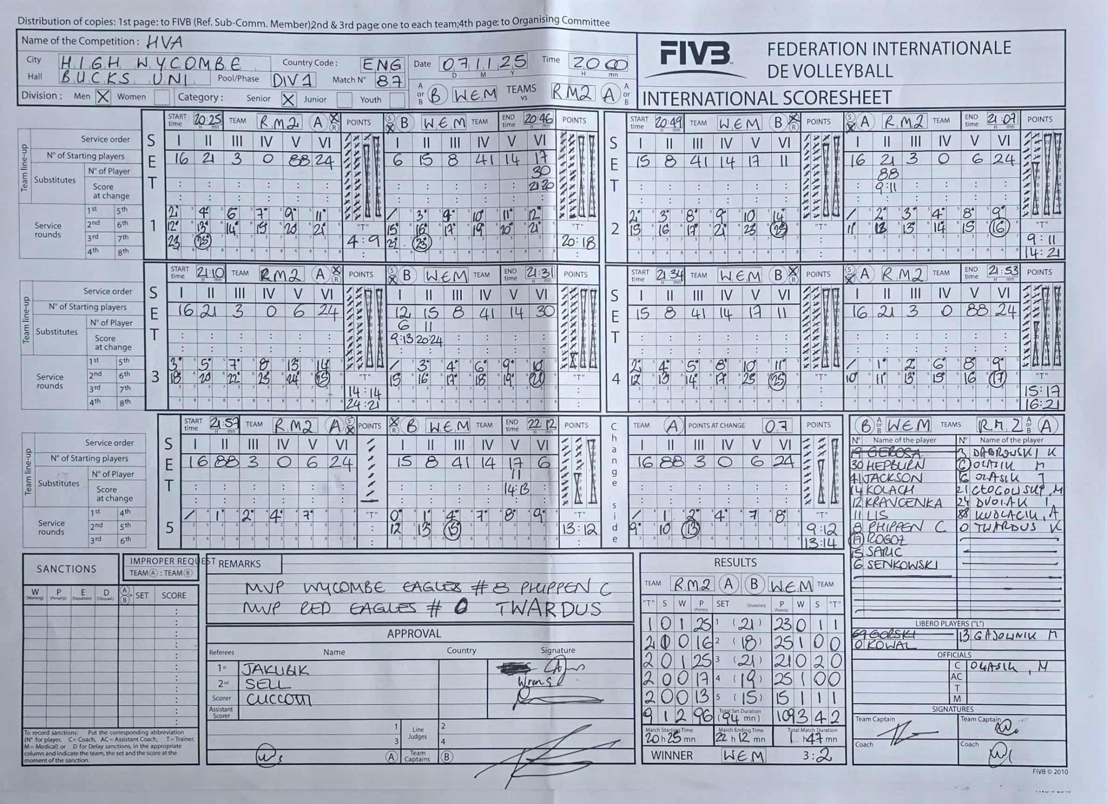 Hepburn, J (30) Jackson, D Kolach, P (14) Kowal, W (9) Kravcenka, V (12) Lis, M (11) Phippen, C (8) Rogoz, M (17) Saric, A (15) Senkowski, S (6) |