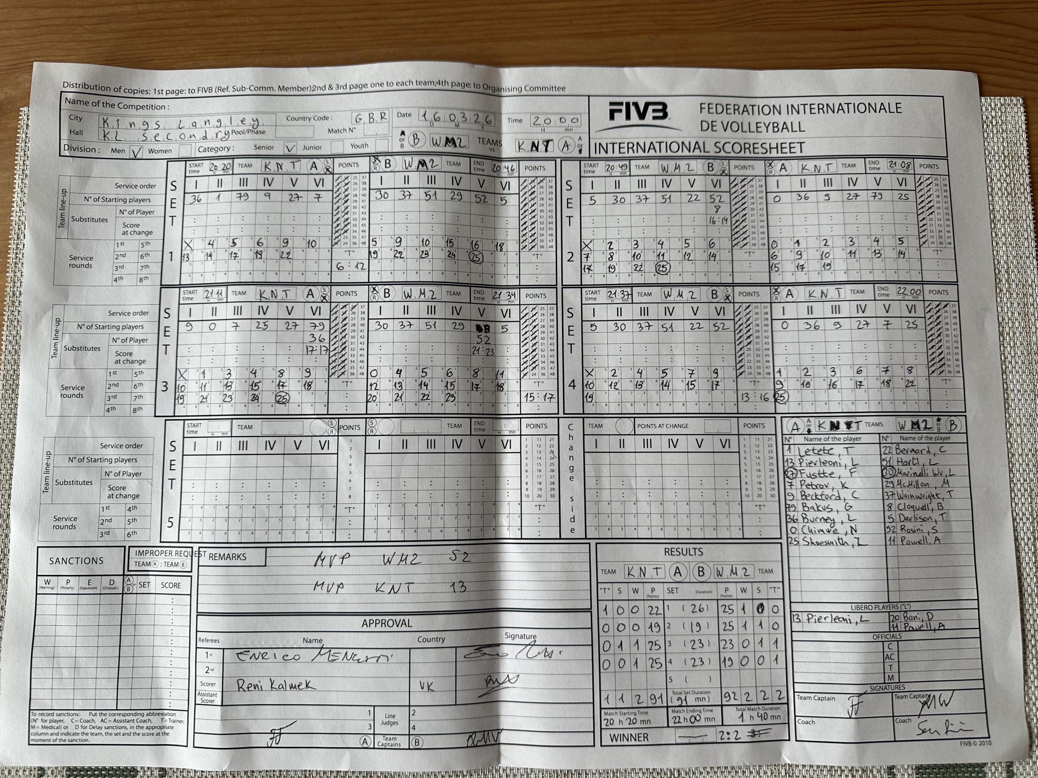On Set 2,3 and 4 KNI had only 3 core players instead of 4, therefore the set are standing as null. Moving to a 3-0 for Werewovese
