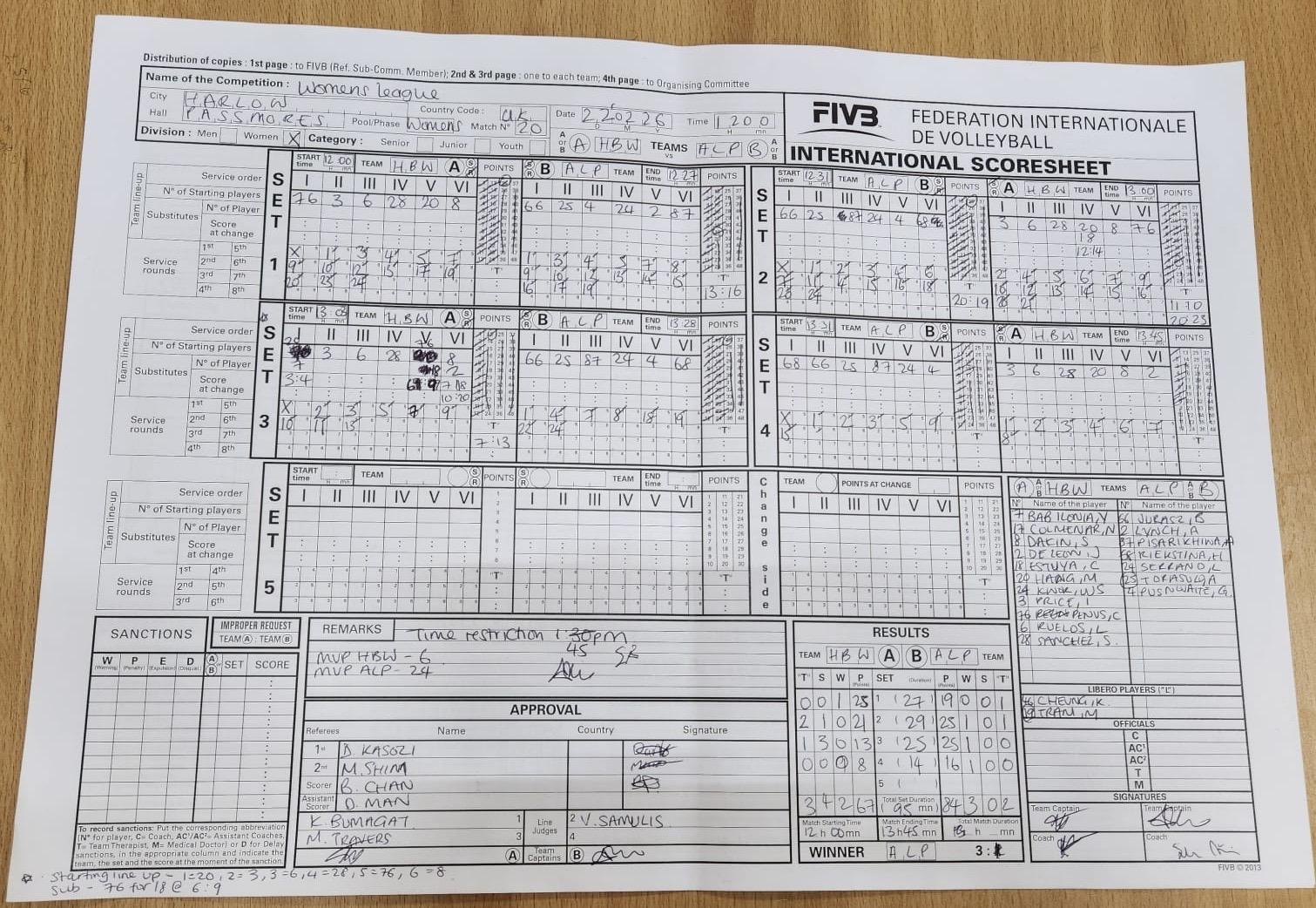 * League Points are normally awarded as follows: 1 point for playing, 1 point per set won and 2 points for a win. In the unlikely event of a draw due to time-restrictions, each team gets 1 point for the draw.