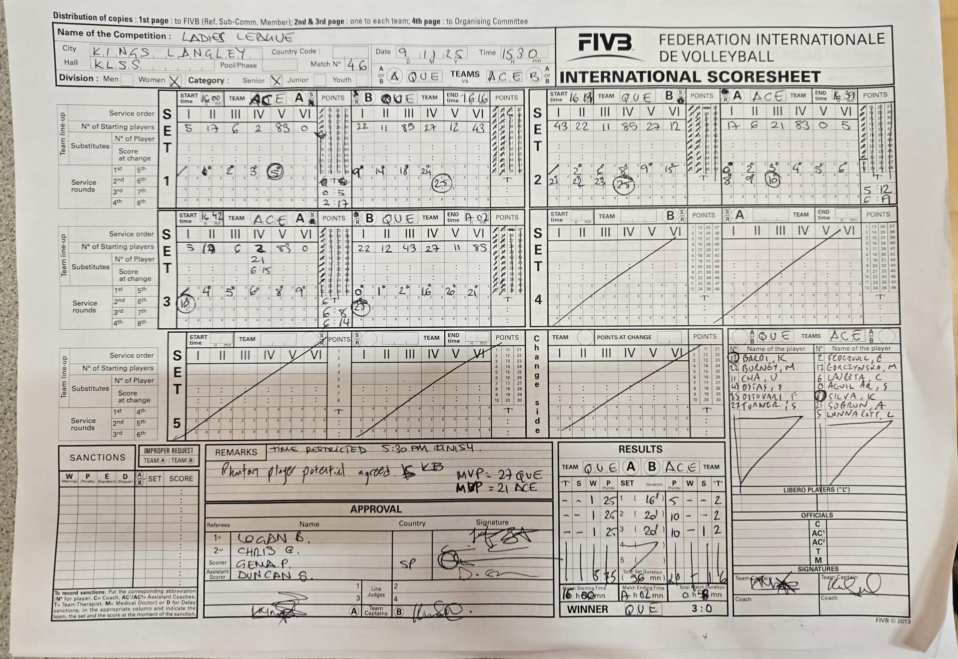* League Points are normally awarded as follows: 1 point for playing, 1 point per set won and 2 points for a win. In the unlikely event of a draw due to time-restrictions, each team gets 1 point for the draw.