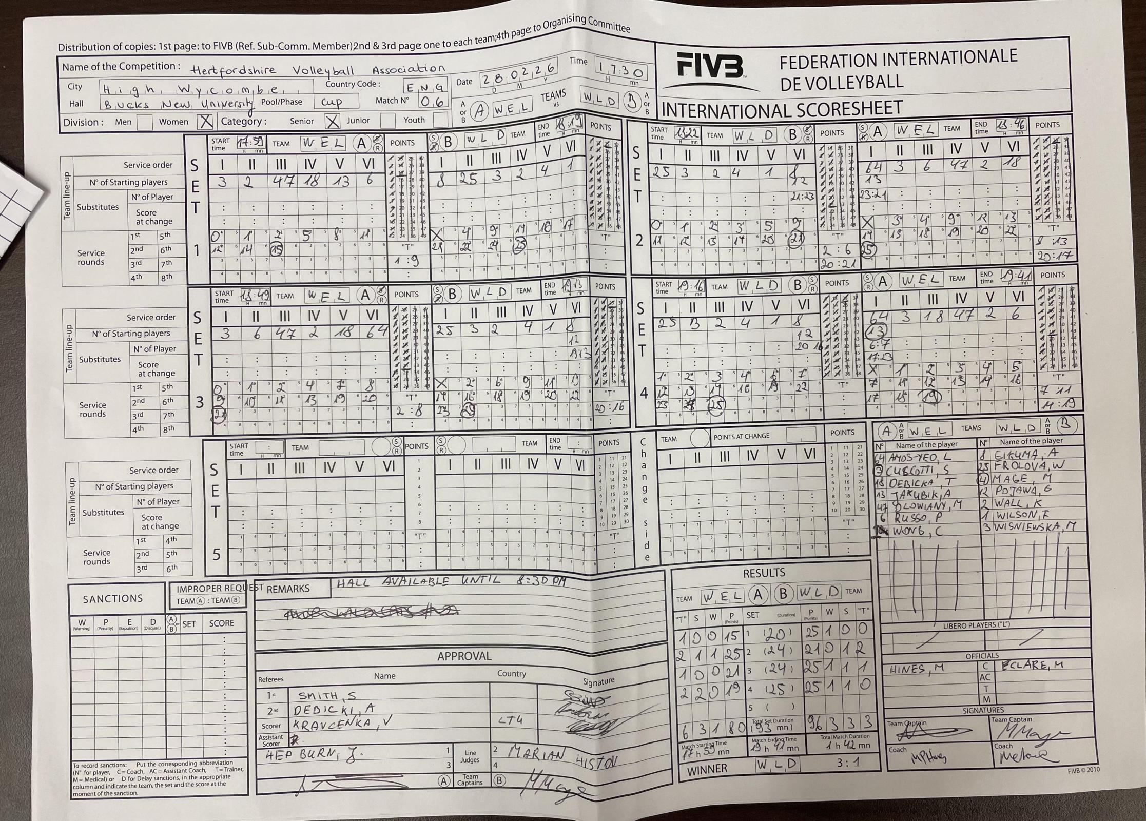 Frolova, W (25) Gikuma, A (8) Mage, M (4) Pojawa, G Wall, K (2) Wilson, F (7) Wisniewska, M (3) |